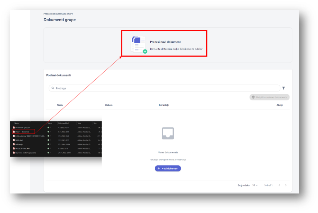 3. Nakon što ste učitali PDF dokument klikom na „Prenesi“ dokument će biti vidljiv svim članovima grupe.