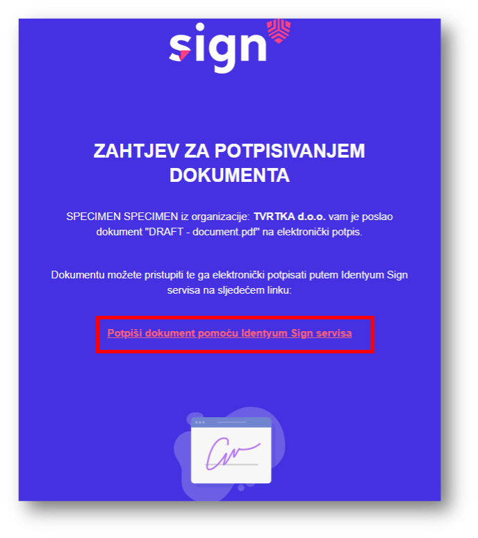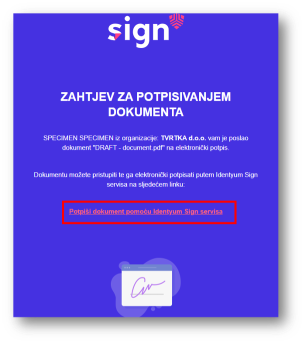 Svi potpisnici koje ste odredili kao primatelje dokumenta, zaprimaju notifikaciju na e-mail/mobitel sa linkom kojim ih se poziva na potpisivanje dokumenta.